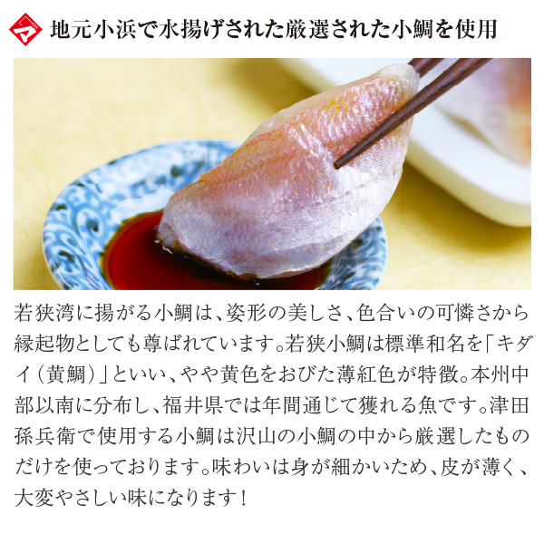 ■原材料:地場の小鯛・本醸造米酢・白板昆布・本味醂・天然塩・砂糖